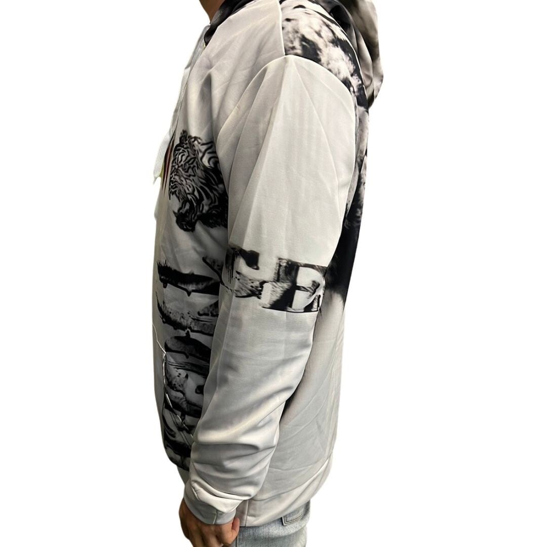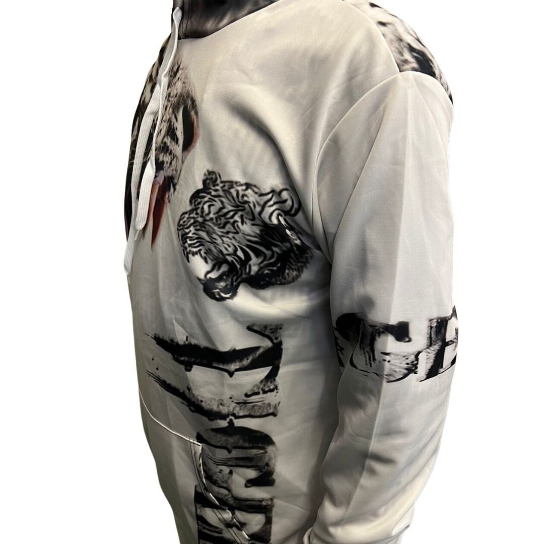 【在庫限り】パーカー ホワイトタイガー MorLorXL 選べる3サイズ 虎 トラ 長袖 トップス 韓国ファッション ビッグプルオーバー 夏でも着れる メンズ レディース カットソー スウェット スエット トレーナー ビッグシルエット 長そで 十分袖 十分そで 10分袖