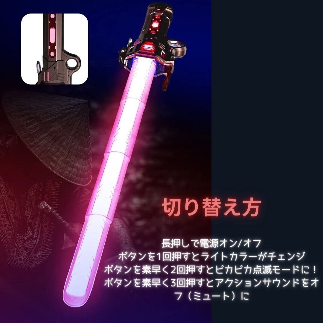 電源ボタンを押せば音が鳴り鮮やかに光ります!さらにボタンを押すと青や赤や紫に色が変わっていきます!ごっこ遊びやコスプレの道具にピッタリ!