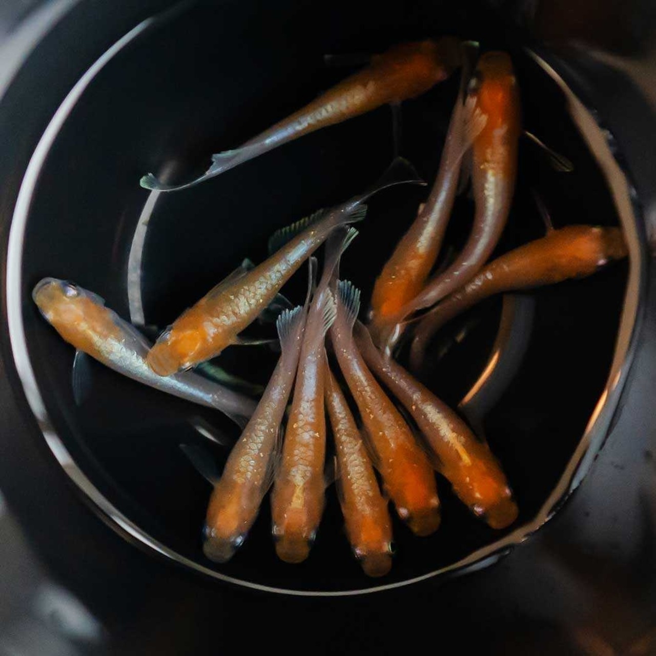 水槽に水を作っておきましょう、水道水で作る場合は室内で2.3日、室外で少なくとも半日です。市販のカルキ抜きのご利用もおすすめです。水温を25度付近にしておきます。運ばれてきたメダカはいつもより元気がないこともあります、そんな中水槽にジャバーとメダカを入れてしまうと、ますます元気が無くなってしまう子もいます。お家の水槽の水に慣らしてあげるためには、ビニールに入ったメダカをそのまま水槽に浮かべ、つまようじなどでいくつか穴を開け、2.3時間放置した後、水槽に解放してあげるのが良いでしょう。