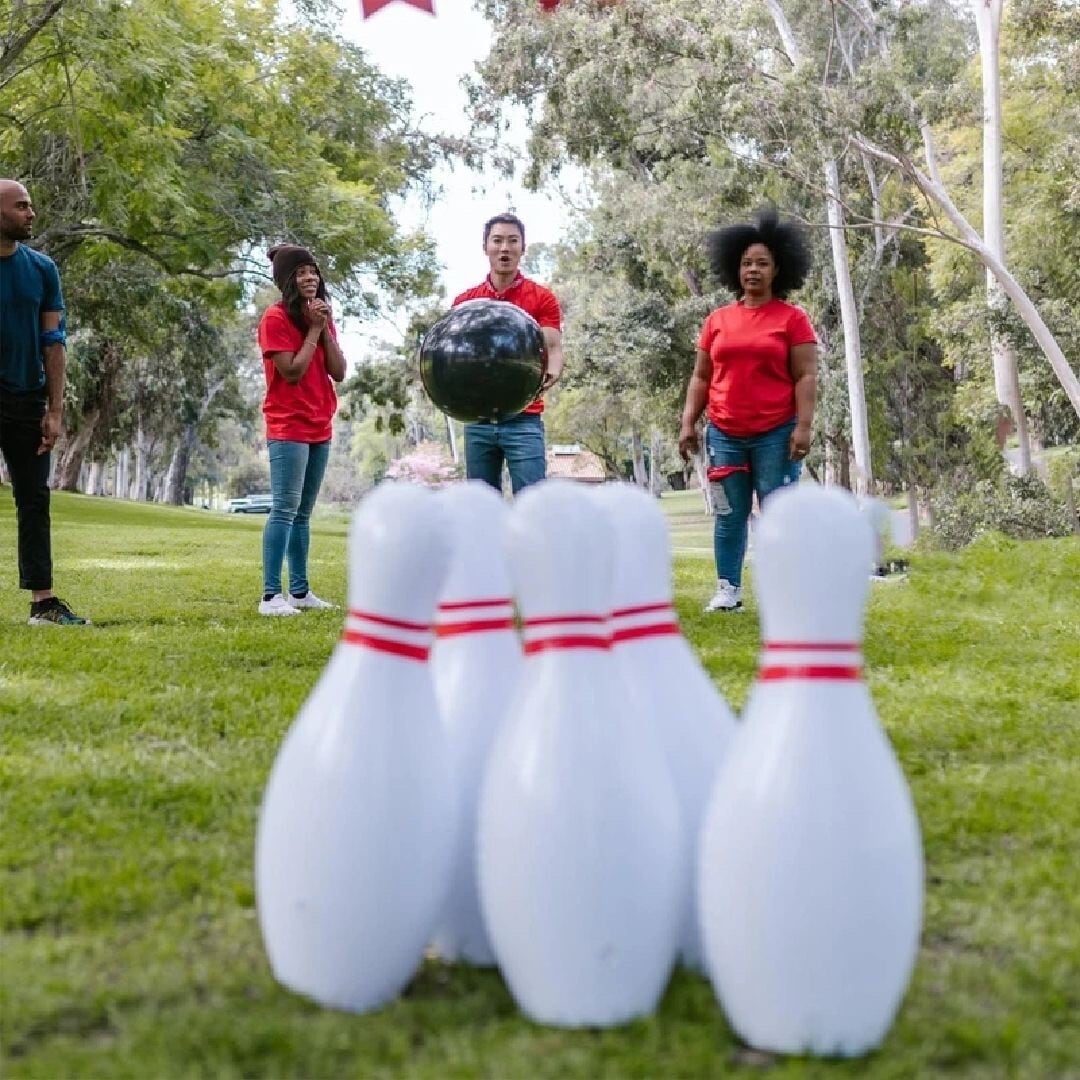 巨大なボウリングピンとボールがなんだか面白い!