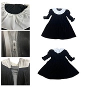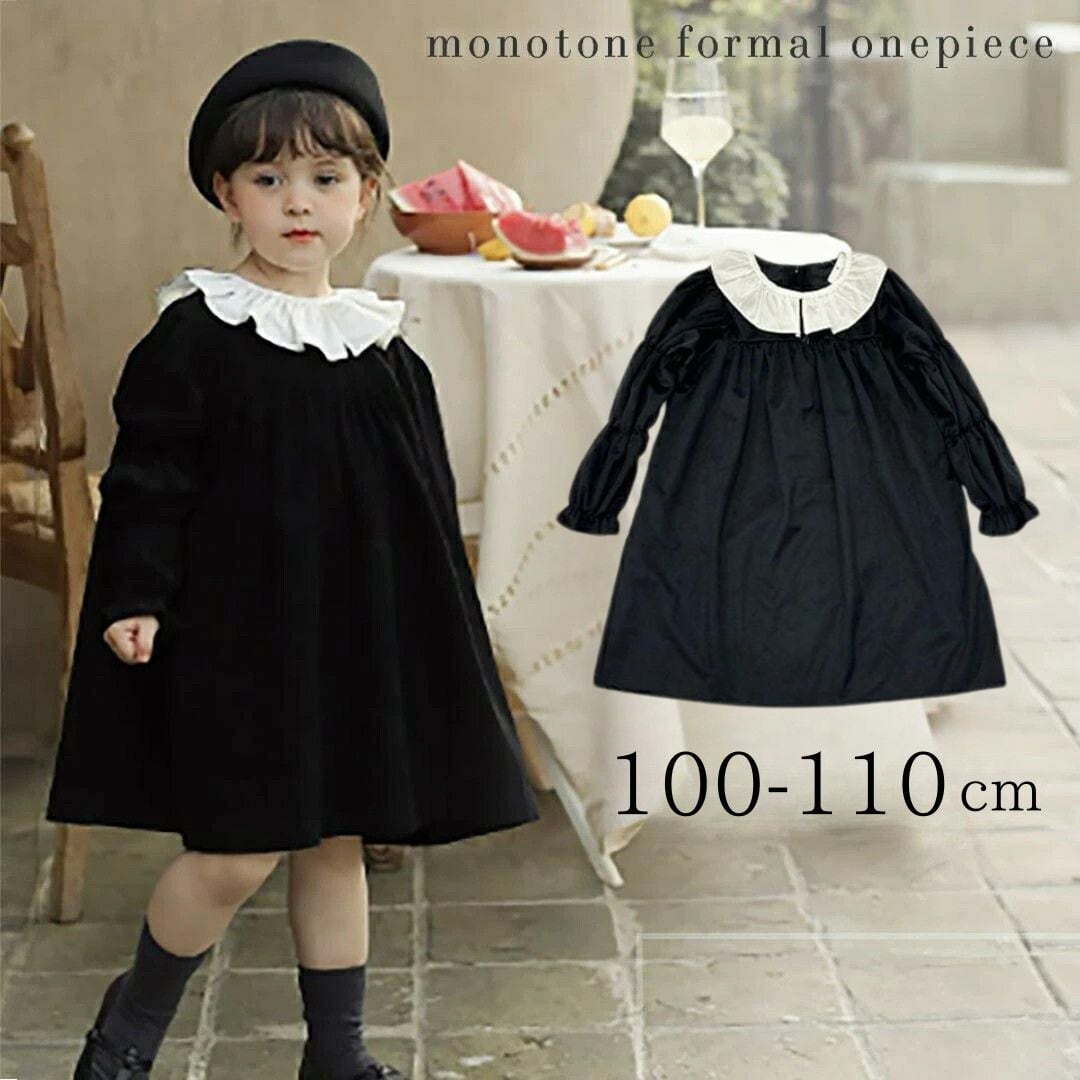 【在庫限り】フォーマル 黒 ワンピース 女の子 襟 フリル ギャザースリーブ コードドレス レトロ 可愛い 無地 入学式 卒業式 秋 七五三 おしゃれ 発表会 結婚式 冠婚葬祭 保育園 幼稚園 小学校 礼服 お祝い 行事 ジュニア おそろい 洋服 シンプル ブラックワンピース バックファスナーきれい