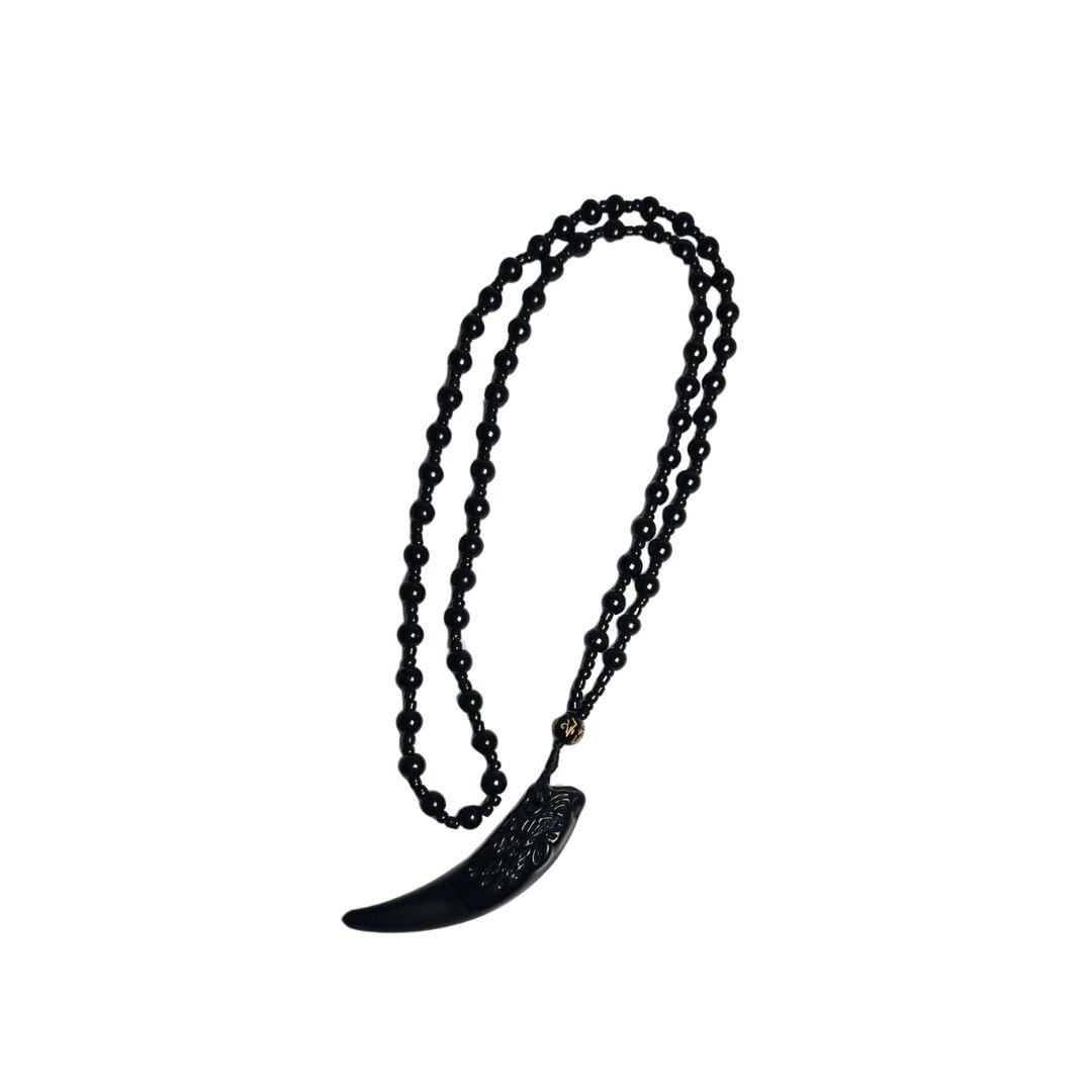 ネックレス 狼の牙 黒数珠ネックレス 首輪 紐 アクセサリー お守り 厄除け 魔除け 数珠 ブラック オオカミの牙 キバ 歯 狼 ウルフ wolf お守り 御守り スタイル お洒落アイテム 開運厄除 祈願成就 風水