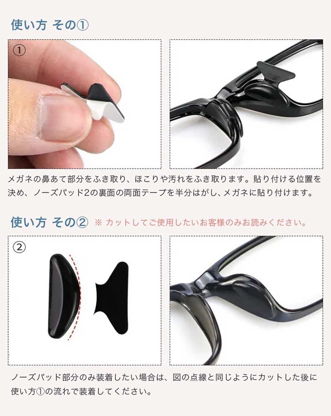 *こちらは鼻パッドがフレーム一体型のタイプのメガネのみ適応します。鼻パッドがフレームから独立しているメガネには適応しておりませんのでご了承ください。