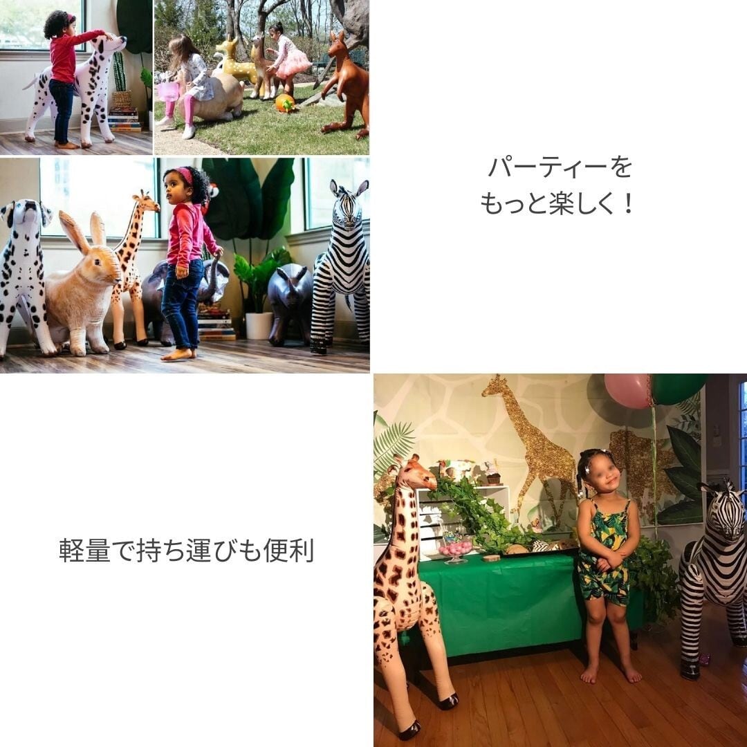また、店舗のクリスマス仕様やお部屋でのパーティー、撮影にも便利なアイテムです。大きな会場やテナント、ショッピングモールでアニマルパーティー!にぎやかな雰囲気になります