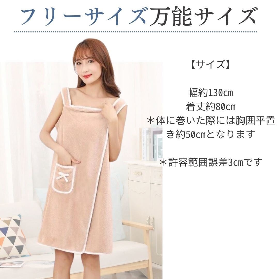 お風呂上がりにサッと着用できるワンピースの様なバスタオルになります。袖を通すタイプなのでずれ落ちることなくご利用いただけます。フロントはスナップボタンで止めて体に巻く仕様になっています。