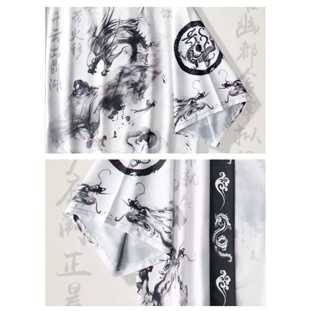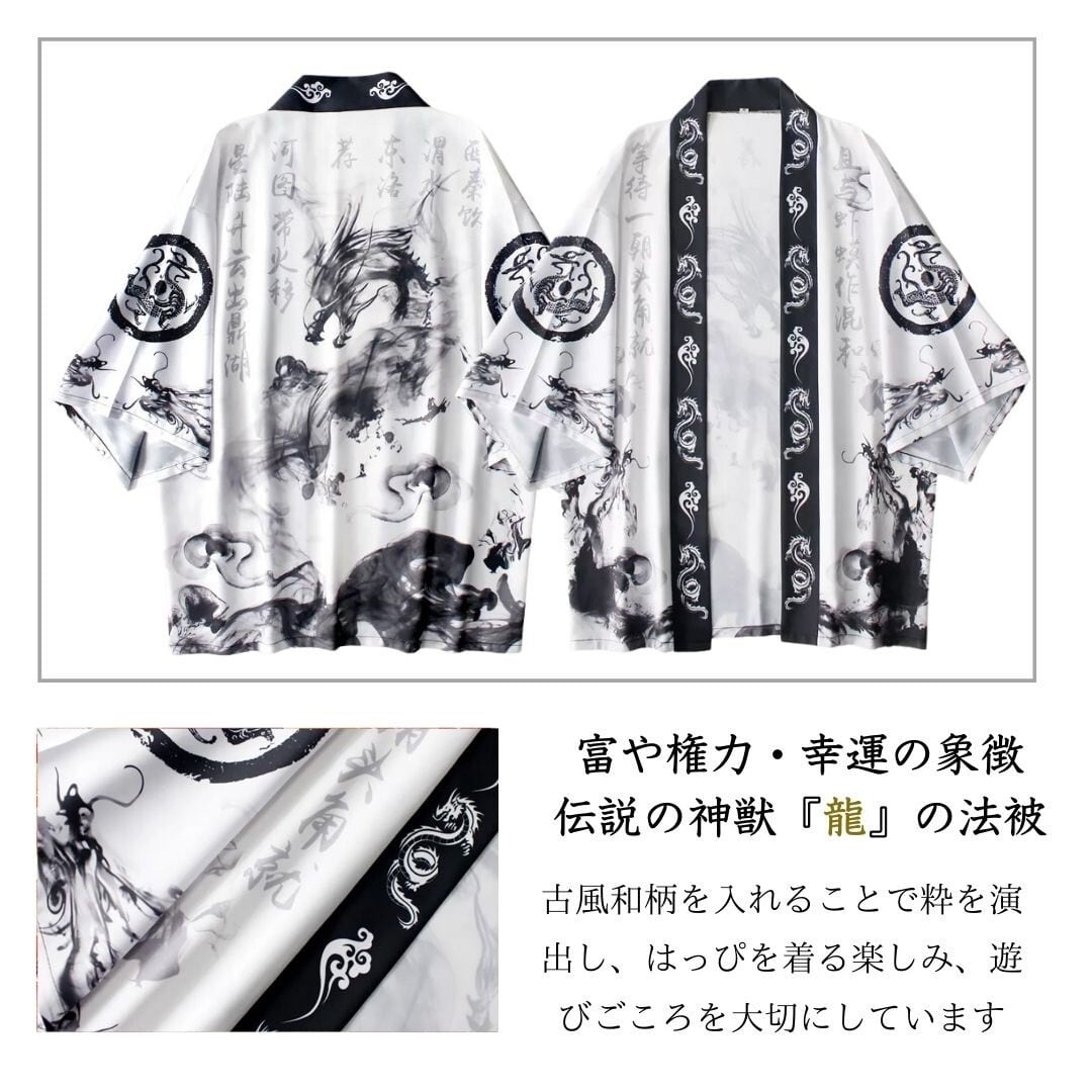 法被 水墨画 龍 【3】 夏祭り 夏恋 寺 韓国ファッション 神社 羽織り 半纏 はんてん ハッピ 長半纏 半天 袢天 半被 お祭り衣装 雅 和柄 羽織 和装 カーディガン 浴衣 着物 はっぴスタイル かっこいい かわいい 風物詩 祭 墨 モノクロ 黒龍