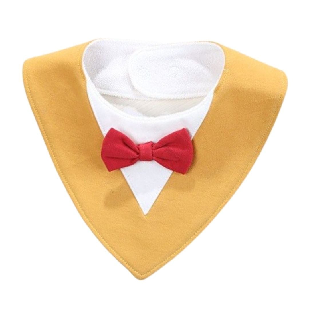 しっかりよだれを吸収しつつも、あまり主張しすぎない大きさ。蝶ネクタイをあしらったオシャレなデザインスタイです