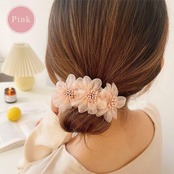 お花の飾りがエレガントなシルクシフォンヘアバンドです。これがあれば難しいお団子ヘアーもキレイに簡単に!ヘアアレンジの幅が広がります