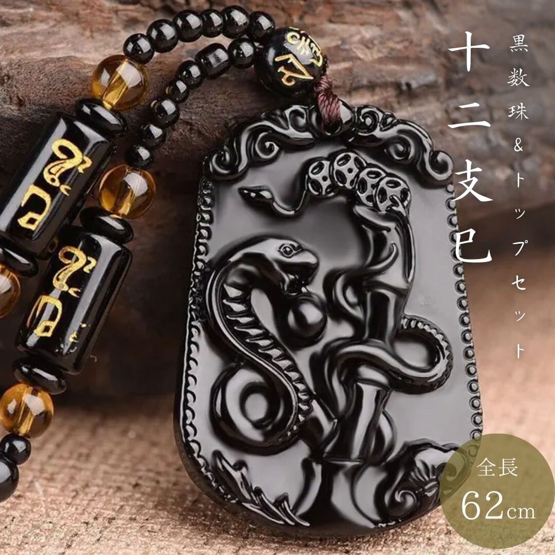 ネックレス 干支 巳 黒数珠ネックレス 蛇 ヘビ 十二支 縁起物 首輪 紐 アクセサリー 厄除け 魔除け 数珠 ブラック お守り 御守り スタイル お洒落アイテム 開運厄除 祈願成就 風水 パワースポット 開運 金運 財産運 出世運 恋愛運 おしゃれ かっこいい 高級