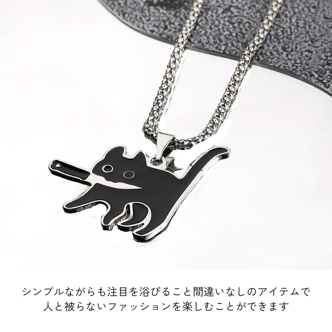 とてもかわいくて愛らしく、ナイフを咥える黒猫ちゃんが印象的なファッションネックレスです。
