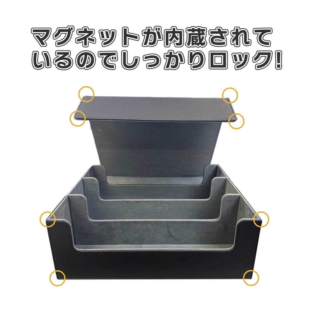 格が上がる、魅せるカードデッキケース。 トレカの収納に最適なストレージボックスです。せっかく集めたカードだからこそ、大切にそしてしっかりと保管したいもの。レザー調で高級感があるので、仲間から一目置かれること間違いなし