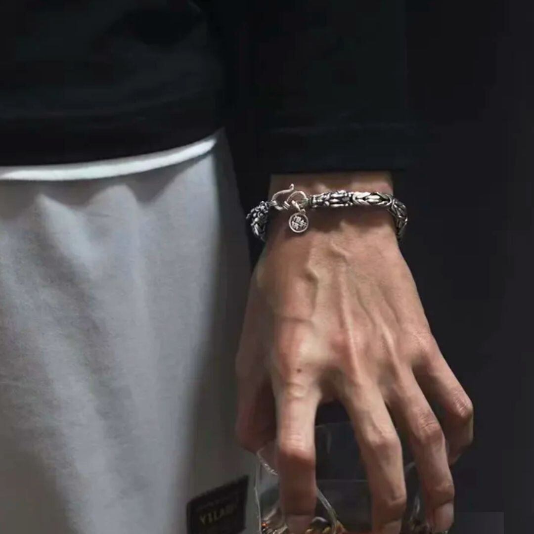 躍動感溢れる双竜ドラゴンデザインのブレスレットです。