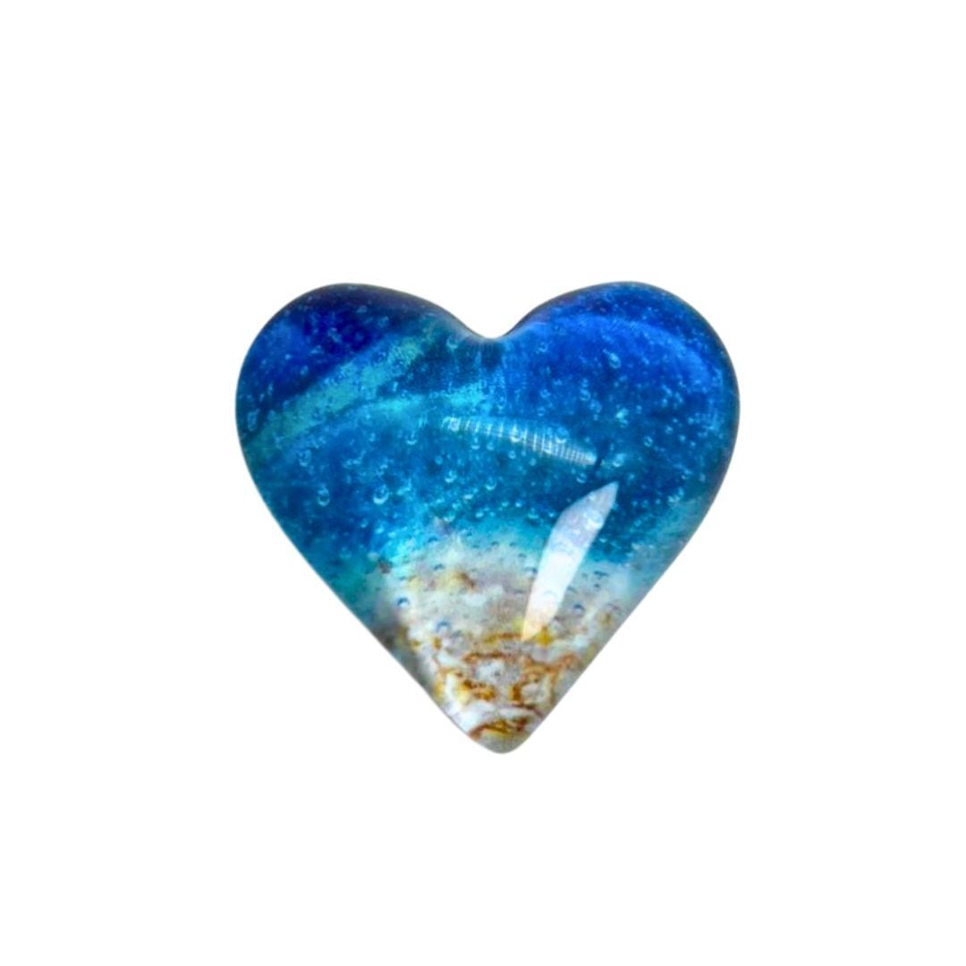 このハートストーンで、思い出はいつでもあなたと共にあります。 そのアクアブルーと砂浜の色は、ビーチの時代の思い出を想起させ、素敵な贈り物になるでしょう