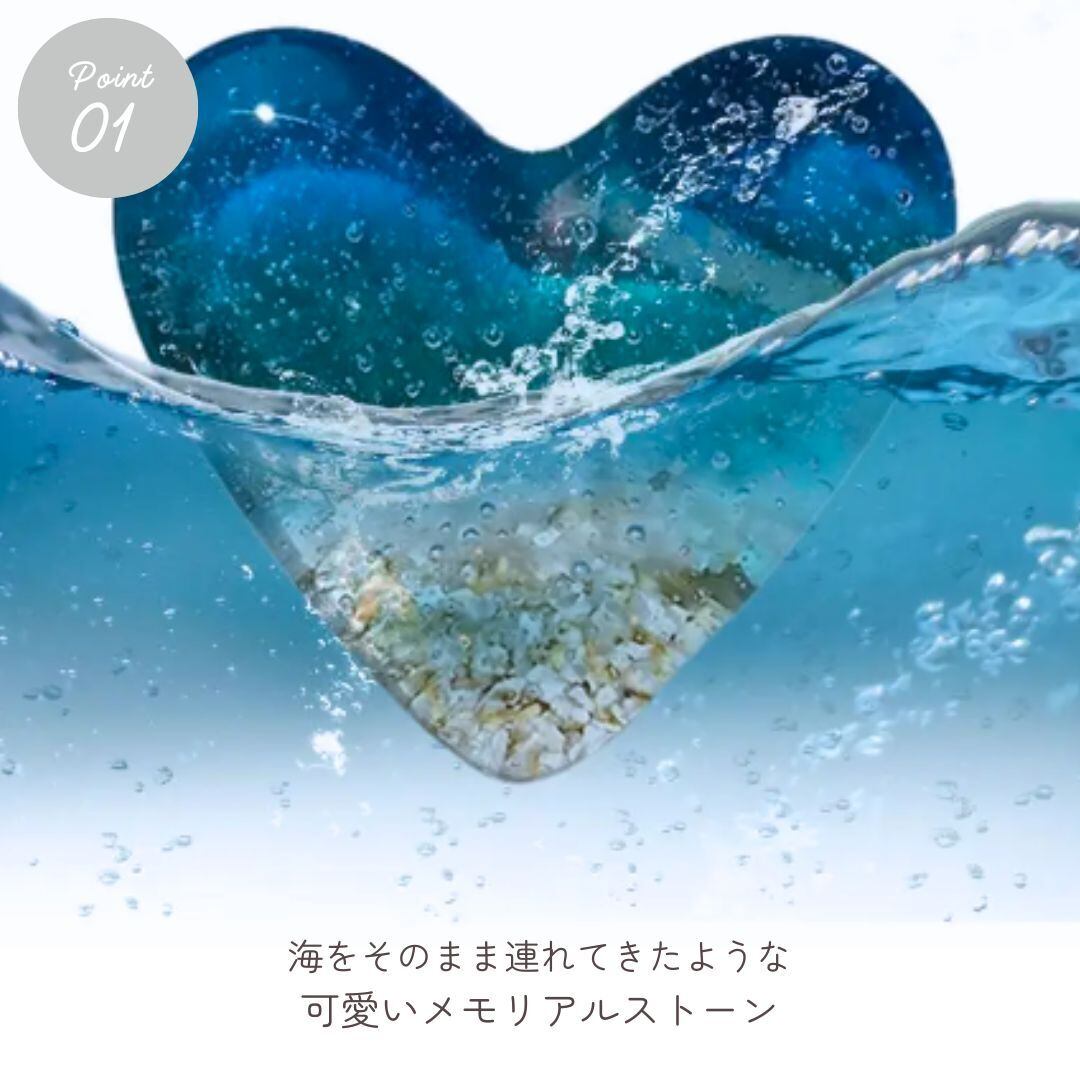 海の一部をそのまま閉じ込めたようなデザインのハートのメモリアルストーンです
