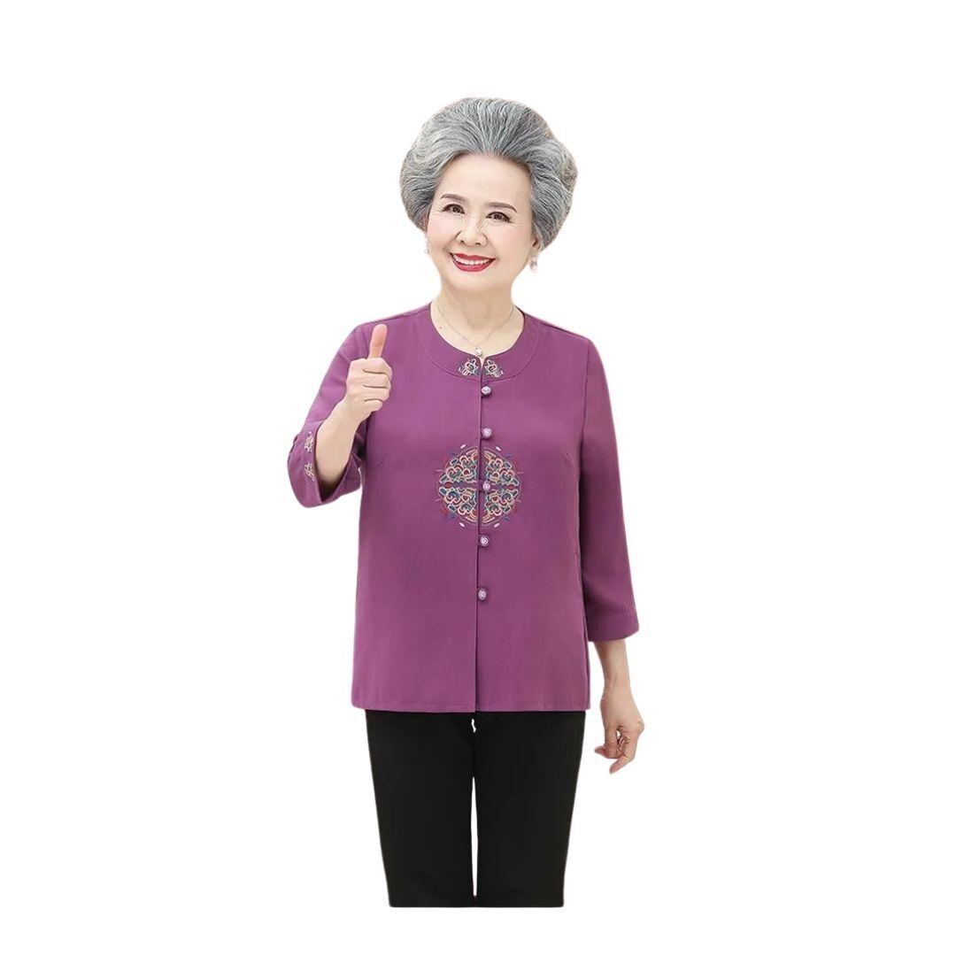 婦人服 優雅なる時代 七分丈 60代 70代 80代 女性向け フォーマル 軽快シャツと黒パンツ 上下セット ミセス シニア向け 大人 40代 50代 高齢者 女性 婦人用 レディース ナチュラル 初老 おばあちゃん 冠婚葬祭 出勤 出張 仕事用