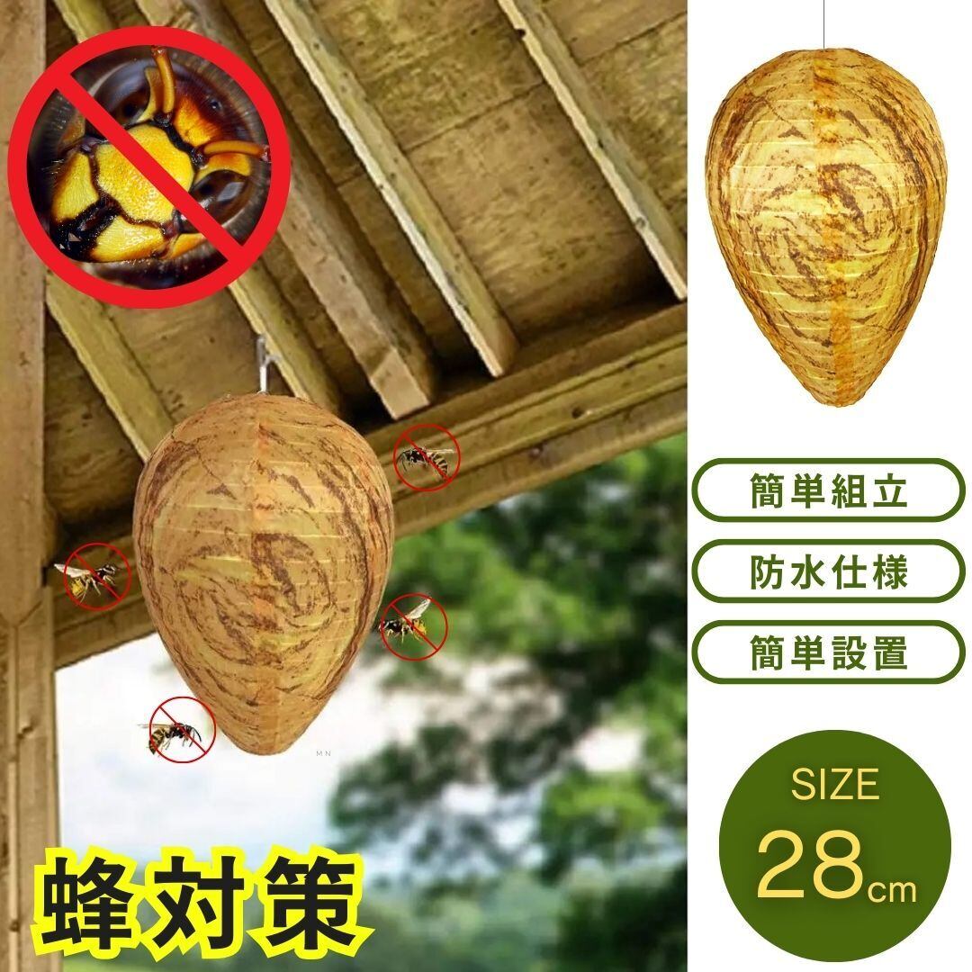 ハチの巣のおとりはガーデン、果樹園などの美しい装飾としてだけでなく、 軒下、ひさし、木、バルコニー、ガレージその他ハチが巣を作る可能性のある場所の下に吊るすことで、本物のハチを近寄らせない、危険な虫に対抗する自然な抑止力になるでしょう