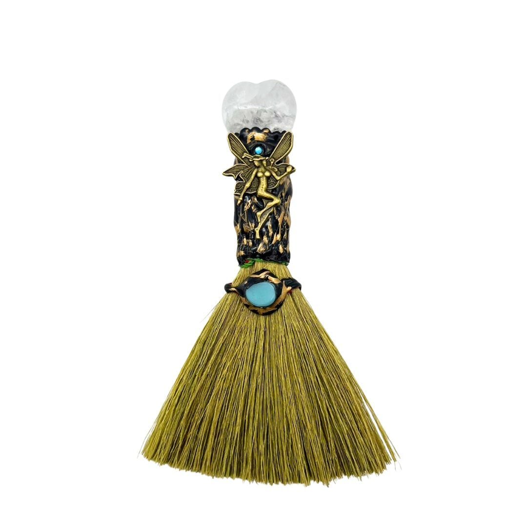 こちらは、儀式や占いなどの際のテーブルや祭壇を掃除する、パワーストーン付きの小さなほうきです。掃除した場所を浄化し神聖なスペースにするためにご使用ください