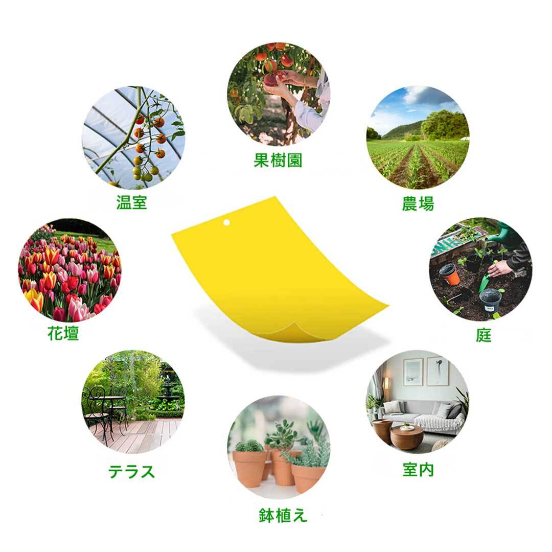 虫が好む黄色いカラーを採用し、強力両面粘着部分で害虫をより効率的に捕獲します。