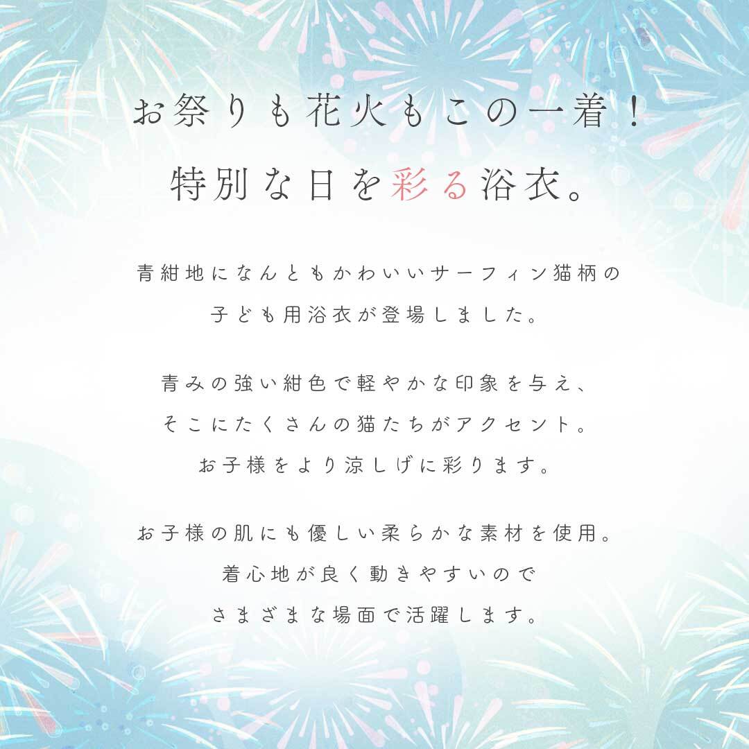 子供用 着物 浴衣 サーフィン 魚 猫 浴衣+襦袢+帯 3点セット 高級感 品質重視 夏着物 浴衣セット 100 110 120 キッズ 男の子 女の子 カジュアル フォーマル 仕立て上がり 振袖 着やすい シンプル 着付け 和装 和服 ゆかた