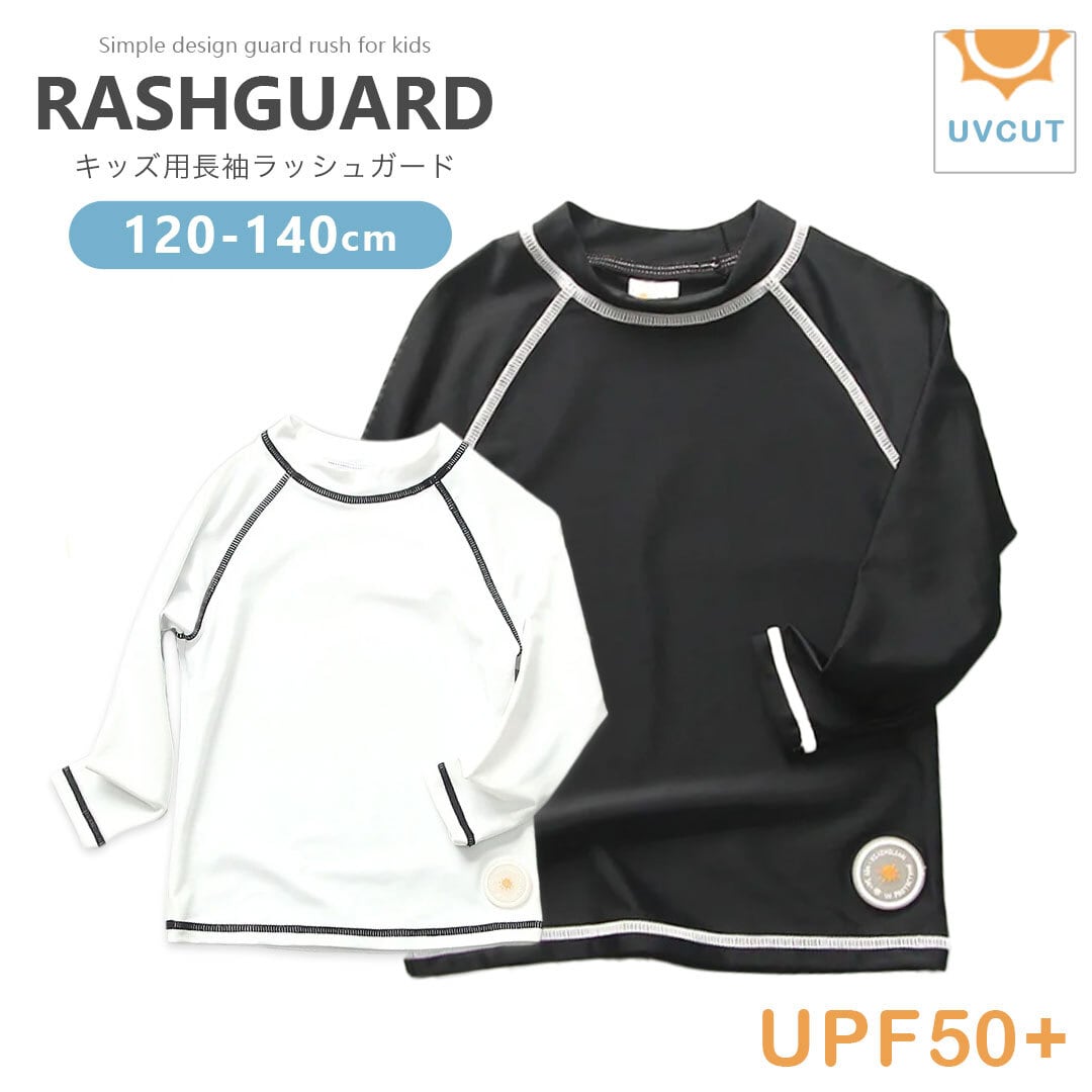 子供用 ラッシュガード トップス 2カラー 3サイズ ビーチウエア 長袖 ホワイト ブラック 120 130 140 UPF50+ こども 子供用 男の子 女の子 ジュニア キッズ UV対策 紫外線対策 日除け 日焼け対策 日焼け防止 熱中症対策