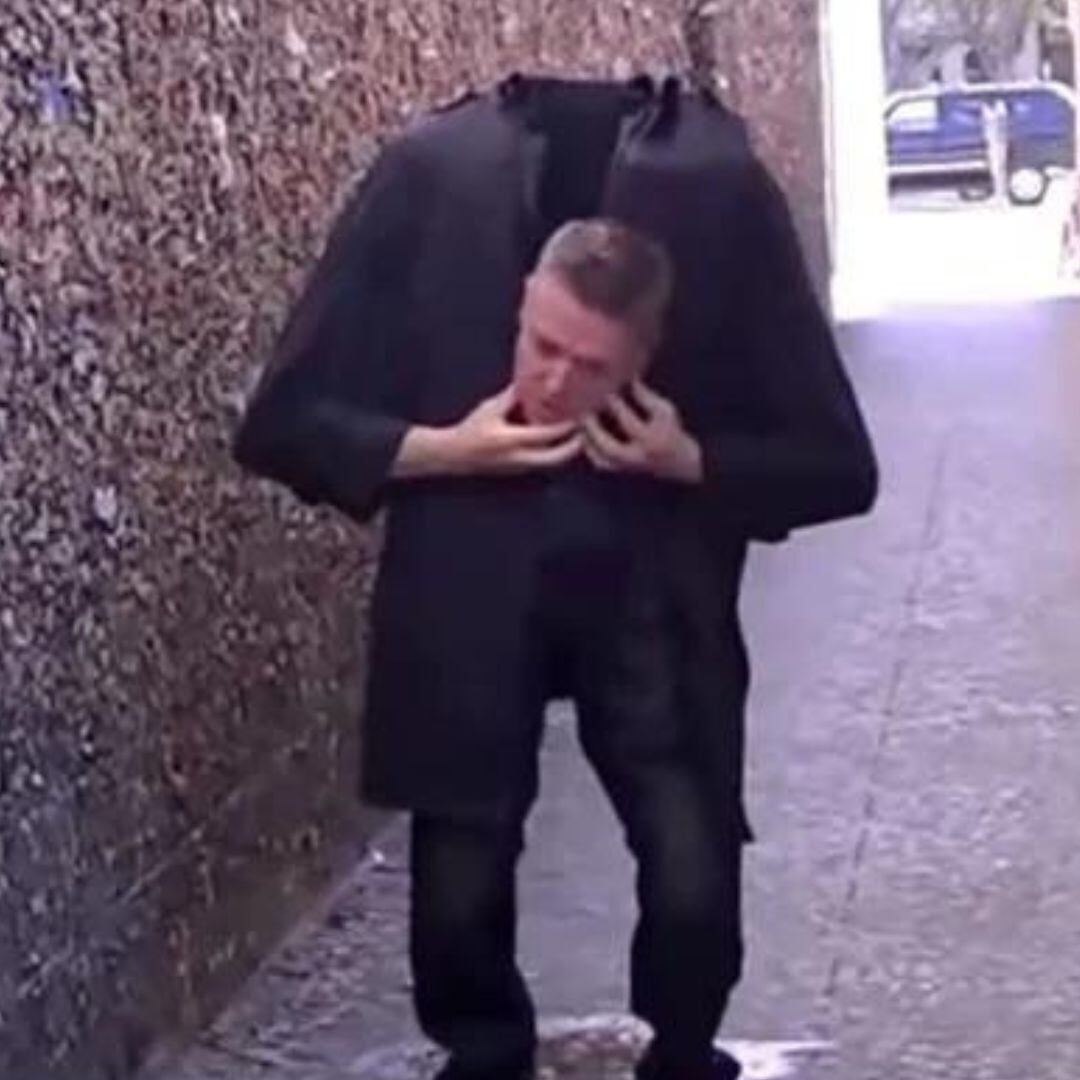 長めのコートを着た状態で、いきなり自分の首を落とすだけです。