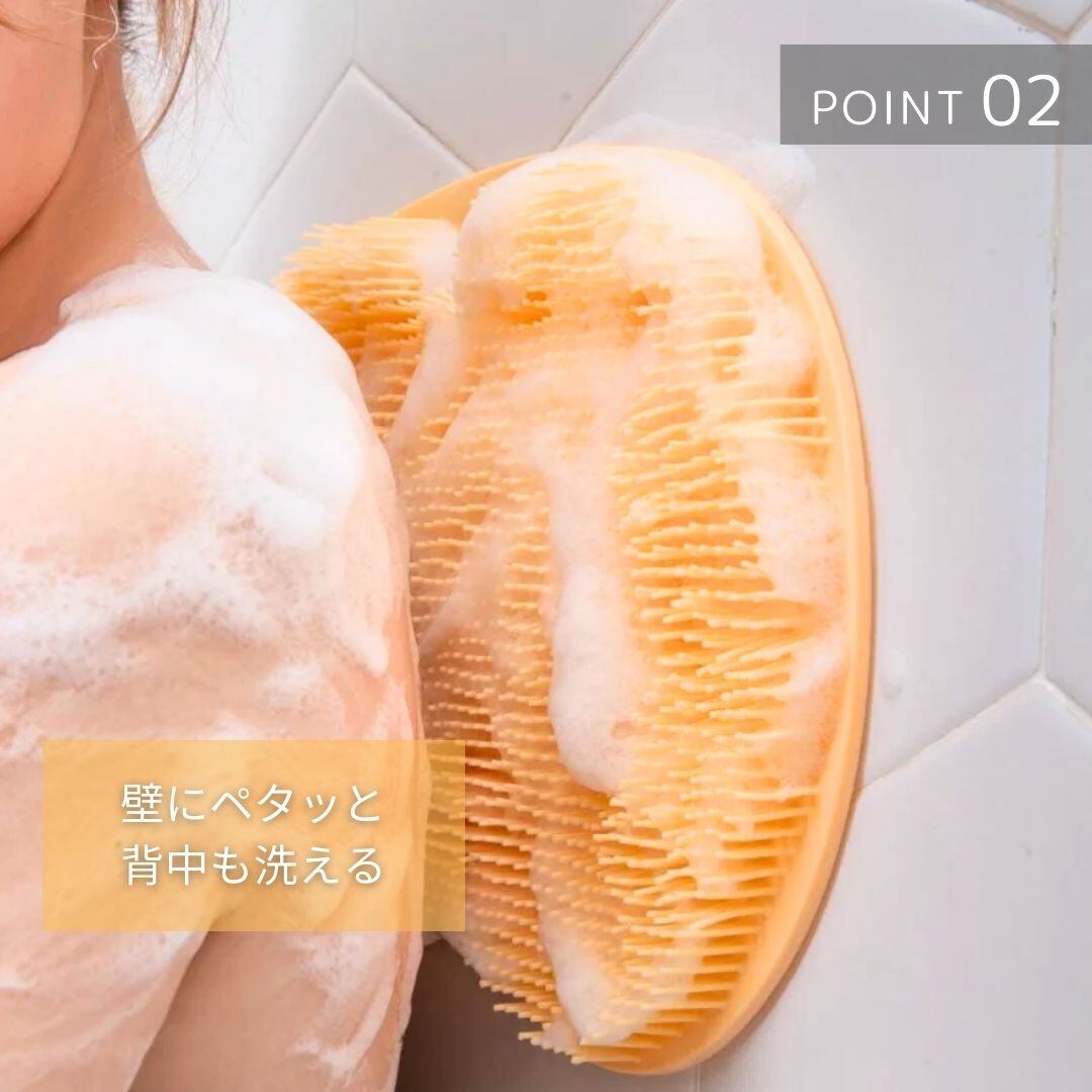 裏面にたくさんついた吸盤が床にしっかり張り付き滑りにくくしてくれるのでお子様でも安心してお使いいただけます。さらに、壁面にも取付けられるので、手が届きにくい背中のケアもできる2WAY仕様も嬉しい!