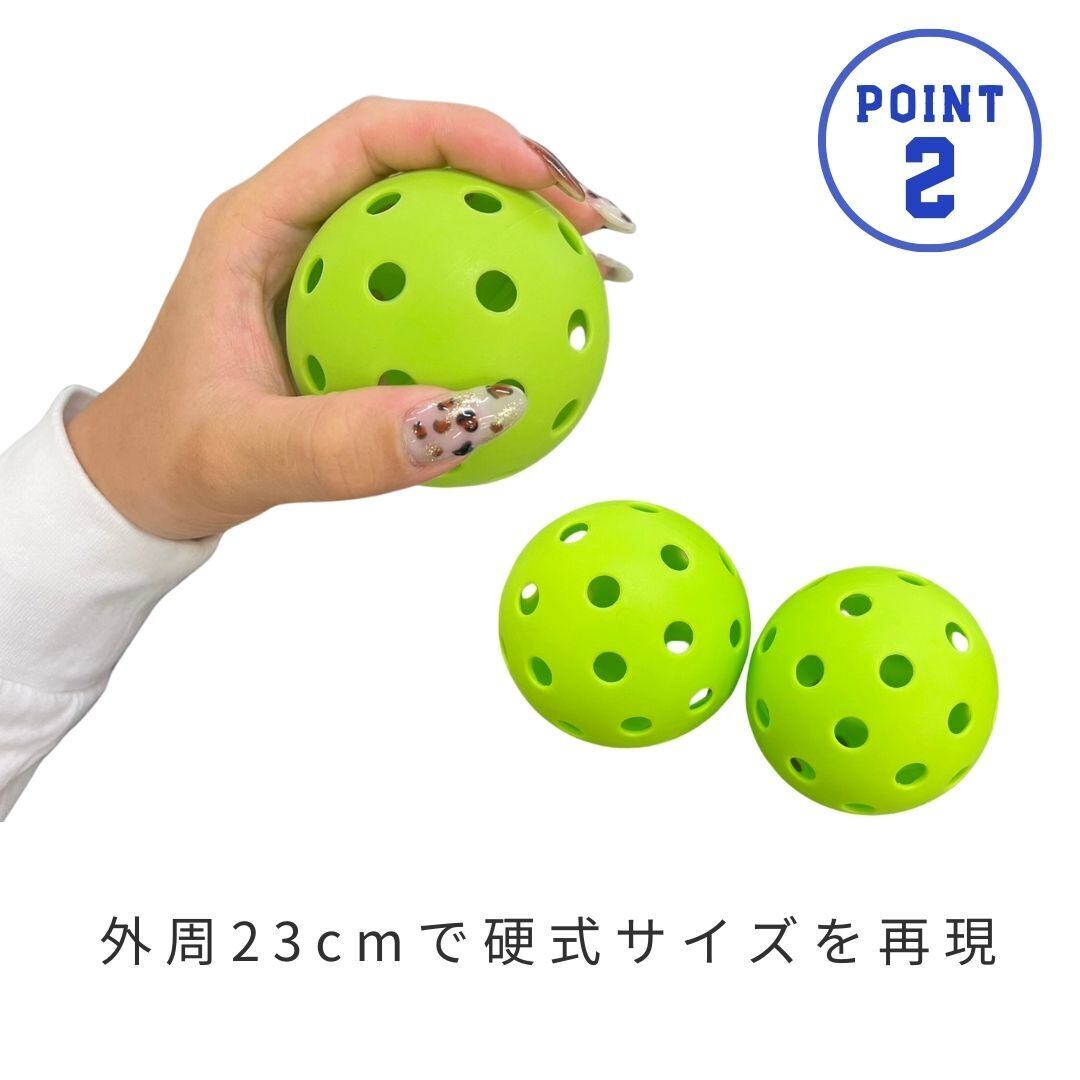 ボールサイズは硬式野球ボール、軟式M号球とほぼ同じ大きさなのでボールを使った各種スポーツ(野球、ソフトボール、ピックルボールなど)の投球、ピッチングなどの練習に最適です