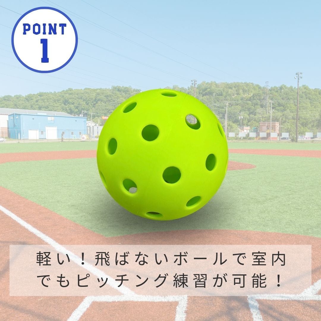 【在庫限り】野球 投球練習用 10個 トレーニングボール 穴開きボール 超軽量 ハードタイプ 投球練習 ピッチング ピッチング練習 投球 キャッチング練習 キャッチング 飛ばない 硬い 蛍光色 屋外用 室内 室外 ピックルボール 穴あきボール