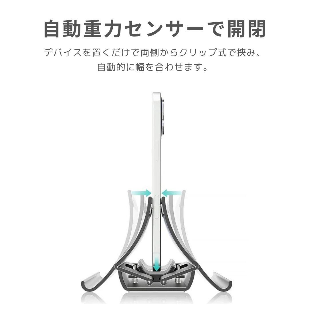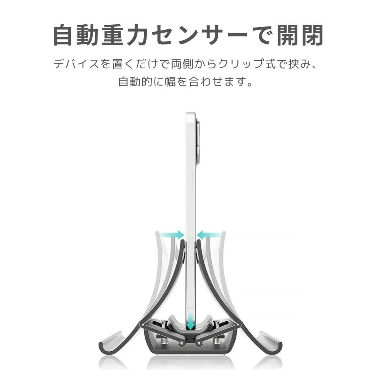 縦に置くだけで両側からクリップ式で挟み、しっかり支えて立てかけることができます。