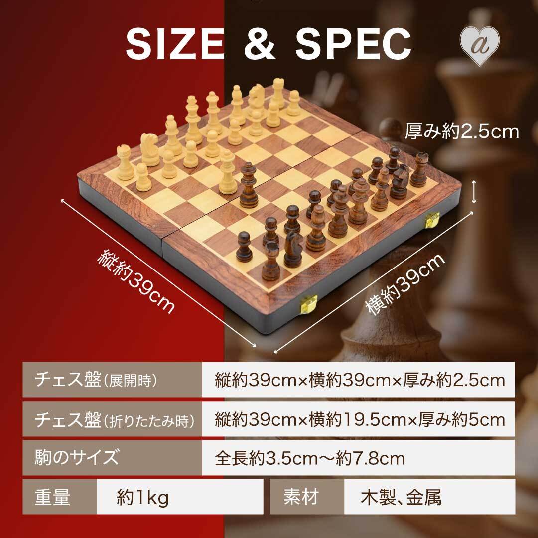 チェス盤(展開時)縦約39cm×横約39cm×厚み約2.5cm