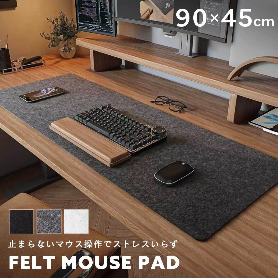 デスクマット マウスパッド 特大 フェルト製 大型 保護マット 90×45cm デスクシート デスクパッド 無地 シンプル 学習机 在宅勤務 テレワーク 在宅ワーク オフィス 自宅勉強 子供 大人 おしゃれ 下敷き ゴム 布製マット ゲーミングマウスパッド 長方形 スクエア型 パソコン PC 周辺機器 薄型 スリム 上品 書斎 会社 家庭用 ホーム リモートワーク コンピューター 作業 効率化 快適 デスクワーク