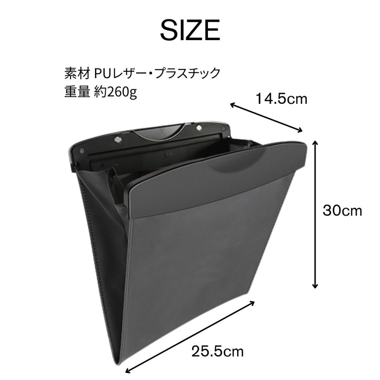 運転席や助手席の後部座席の背面ポケットにフックを引っ掛けるだけで簡単に設置が出来ます。 車の座席との一体感もありおしゃれでシンプルなデザイン設計となっています。また、車種にもよりますが、運転席や助手席の内側やドアポケットにも設置が可能。フックで引っかけて固定させるタイプなのでゴミ箱が倒れないメリットがあります。