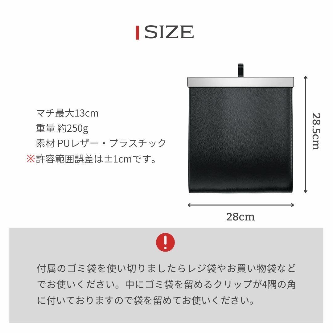 ※中にゴミ袋をパチンと留めるズレ防止用クリップが4隅の角に付いておりますのでそちらにゴミ袋を留めてお使いください。