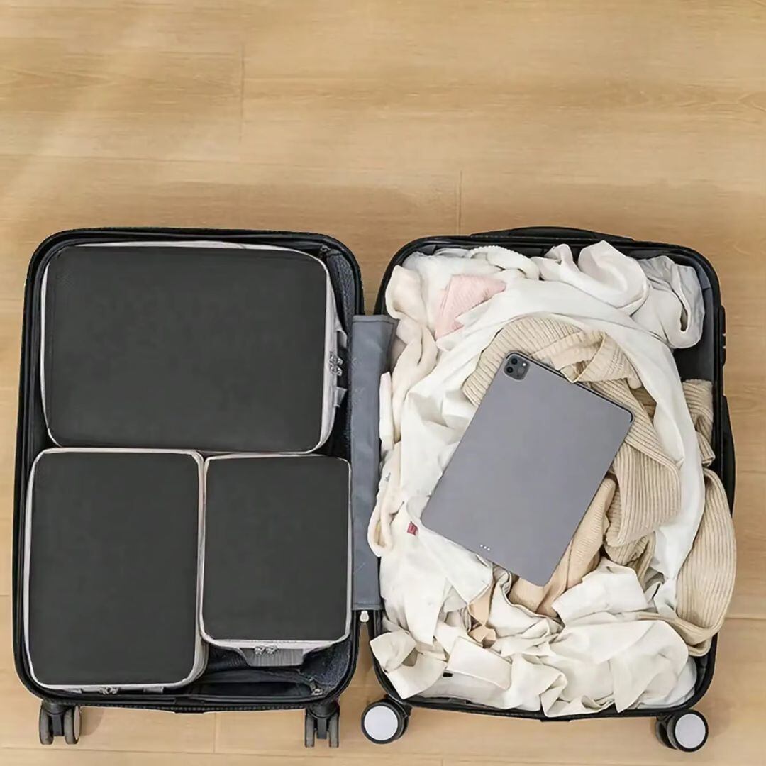 【在庫限り】圧縮袋 トラベルパック 4点セット 全4カラー トラベルポーチ 荷物のかさばり解消 圧縮旅行ポーチセットでスッキリ収納 トラベル 圧縮 ポーチ 衣類スペース 節約 旅行 収納ポーチ 軽量 出張 旅行 仕分け 簡単 ファスナー シンプル