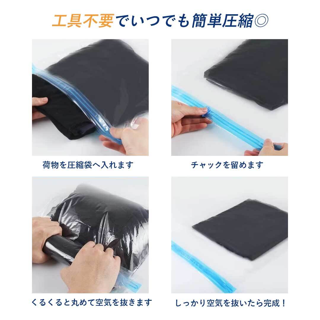 掃除機等は不要で、チャックの開け閉めだけで簡単に衣類を圧縮できます。