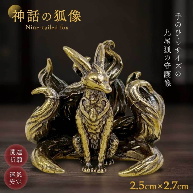 【普通郵便発送】 真鍮 九尾 狐 ミニ 置物 神話の狐像 ミニチュア 九尾の狐 銅製像 デスクオーナメント ホームデコ インテリア小物 お守り 厄除け 魔除け 縁起物 風水グッズ 招福アイテム 開運フィギュア 狐のミニ像 ゴールド コンパクトサイズ 高級感 プレゼント ギフト